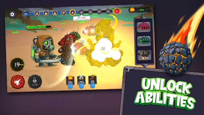 One of the key features of Feed Me Monsters! Idle Battle is the use of automatic abilities and spells. These special abilities and spells will trigger on their own during battles, giving players a strategic edge and making the gameplay even more exciting. Additionally, players can accelerate their progress by spawning extra enemies. This means more coins and XP to strengthen their hero, allowing them to progress even faster.
