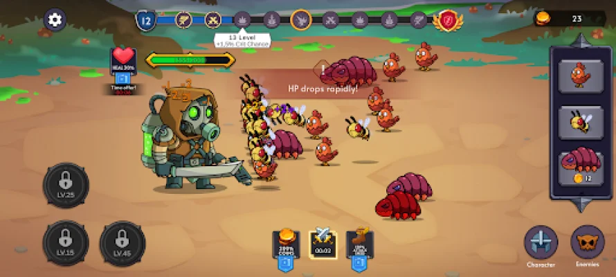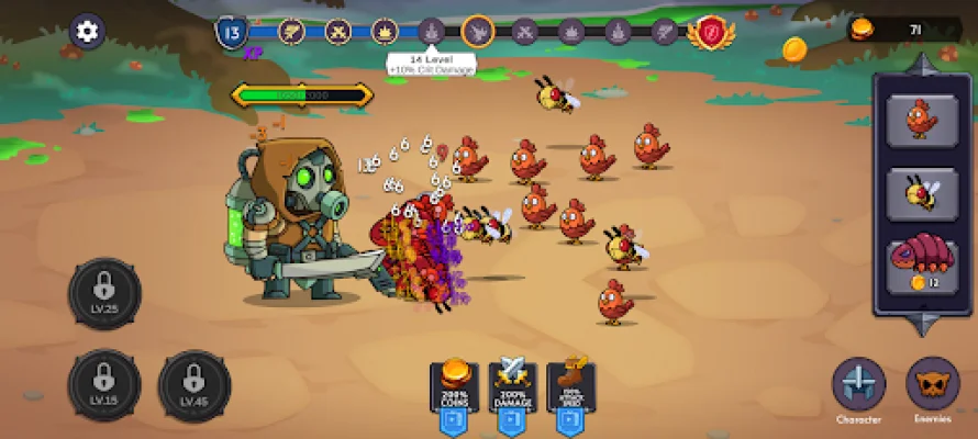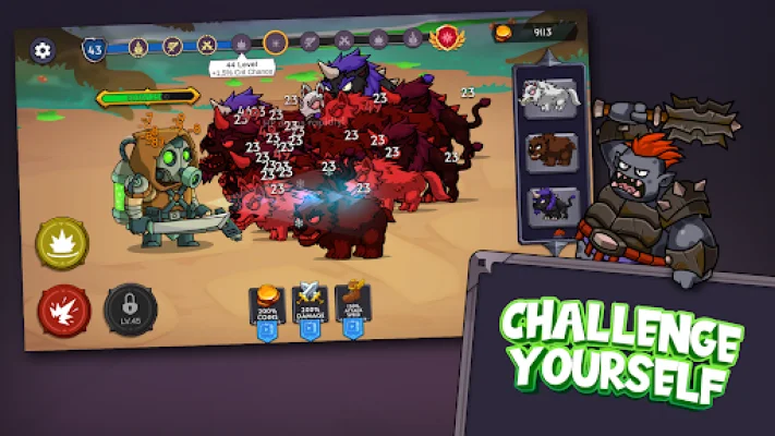 In Feed Me Monsters! Idle Battle, players will face off against a wide range of monsters, from ferocious beasts to terrifying mutants. Each enemy defeated will earn players coins and XP, which can be used to strengthen their hero. This adds an element of progression and strategy to the game, as players must strategically choose which enemies to battle in order to earn the most rewards.