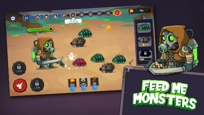 Feed Me Monsters! Idle Battle is an exciting idle RPG game that allows players to take on the role of a hero battling against a variety of monsters. The game features idle gameplay, meaning that your hero will continue to battle automatically even when you are not actively playing. This allows players to return to the game at their convenience to collect rewards and enhance their hero's abilities.