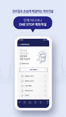 One Stop은 주식, 펀드, 선물옵션, 중개형ISA 등 다양한 계좌를 쉽게 개설할 수 있는 애플리케이션입니다. 사용자는 간편한 절차를 통해 다양한 투자 상품에 대한 계좌를 개설할 수 있습니다. 이를 통해 사용자는 다양한 투자 상품에 대한 접근성을 높일 수 있습니다.