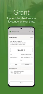 One of the main features of Fidelity Charitable is the ability to recommend grants in a variety of ways. Users can choose from a list of previously supported organizations or look up a new organization to support. They can also set up future, one-time, or recurring grant recommendations, giving them flexibility in how they choose to give back.