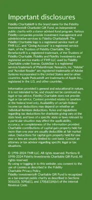 Fidelity Charitable is a part of Fidelity Investments® Charitable Gift Fund, an independent public charity with a donor-advised fund program. This means that various Fidelity companies provide services to Fidelity Charitable, ensuring a reliable and secure platform for users to manage their charitable giving.