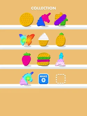 This application allows users to create their own unique pop toys by dragging and placing various materials into a mold. Once the materials are in place, users can press them into shape to complete their toy. The fun doesn't stop there, as users can also pop bubbles on their toy as much as they want. The possibilities are endless, as the only limit is the user's creativity.