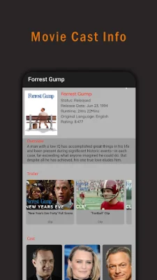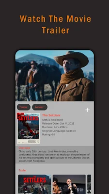Users can also keep track of the movies they have watched by listing them, giving ratings, and writing reviews. This feature not only helps in organizing their viewing experience but also allows them to share it with friends. The app uses the API provided by The Movie Database (TMDB) to show information about movies, series, and actors. It also allows users to watch trailers directly from the app.