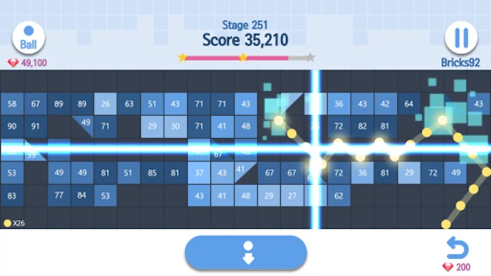 To play the game, users simply touch the screen to set the angle and release to unleash balls. The bricks are destroyed when their durability hits zero, and players must break all the bricks to advance to the next stage. However, if the bricks reach the bottom line, the game is over. This simple gameplay makes it easy for anyone to pick up and play.