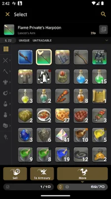 The event list feature allows players to create, edit, and manage scheduled events. This is a great way to bring friends together for group activities in the game. The app also offers item management, allowing players to easily sort, move, sell, or discard items with just a tap. However, it is important to note that item management is not available while logged into the game with the associated service account.