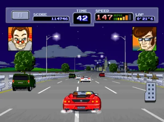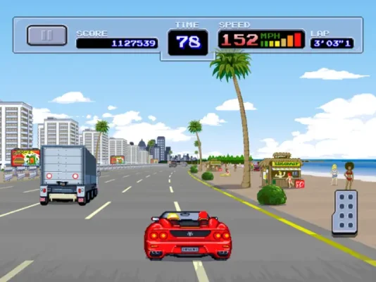 Get ready to experience the thrill of speed in this exciting application! With multiple stages to conquer, you'll have the chance to pick your character and choose your own path as you drive. The retro look and catchy tunes will transport you back to the 80s, making for an immersive and nostalgic gaming experience. But don't get too lost in the past, because you'll need to beat the clock and outpace your challenger to reach the next checkpoint!