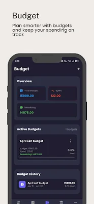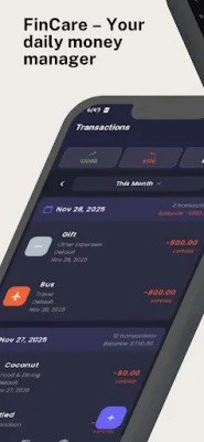 FinCare also offers a budget planner and money management tool. You can set monthly budgets and control your spending to avoid overspending and develop better money habits. This feature is perfect for those looking to improve their financial planning and reduce unnecessary expenses.