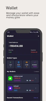 One of the key features of FinCare is the ability to track your daily expenses and income. You can quickly add and manage your expenses in real time, keeping your finances organized and up-to-date. This expense tracker is designed to make managing your money effortless.