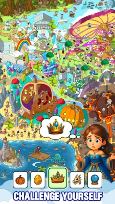 In the game, your mission is to search for and find hidden objects in beautiful picture scenes. You will explore detailed maps, worlds, and locations, using zoom, hints, and skills to uncover hard-to-find items. As you complete levels, you will unlock new scenes and enjoy the challenge of each hunt. Each scene is filled with cleverly hidden items, ensuring that every hunt feels fresh, fun, and rewarding.