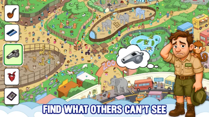 This application is a scavenger hunt game that combines relaxing gameplay with challenging puzzles. It is designed to test your brain, focus, and observation skills as you zoom into detailed scenes and search for tricky objects. The game is perfect for both quick play sessions and longer adventures.