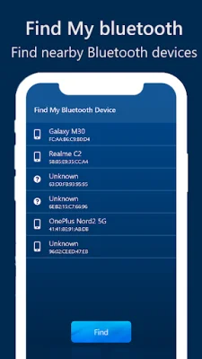 This Find My Bluetooth Device app allows users to easily locate and connect to Bluetooth devices. It displays a list of available devices with useful information such as range, signal strength, and whether they are paired or unpaired. Users can also connect to secured devices using this app.