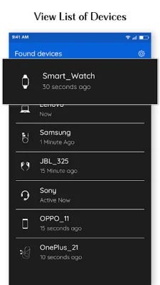 The app works by scanning for all available Bluetooth devices within range, which means that even unknown devices can be seen on the list. This is helpful in case you have multiple Bluetooth devices and are not sure which one you are looking for.