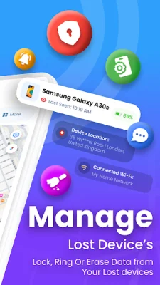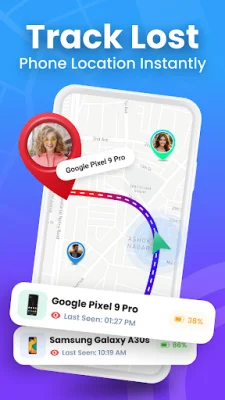 The app offers several features to help you find your lost phone. The Find My Phone Location Tracker allows you to track your phone's location on a map, ring your phone even in silent mode, and lock it remotely or erase data to keep your information safe. This feature is also useful for finding misplaced phones or keeping track of your devices while traveling.