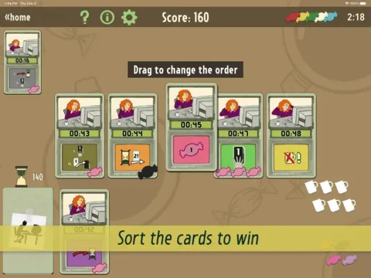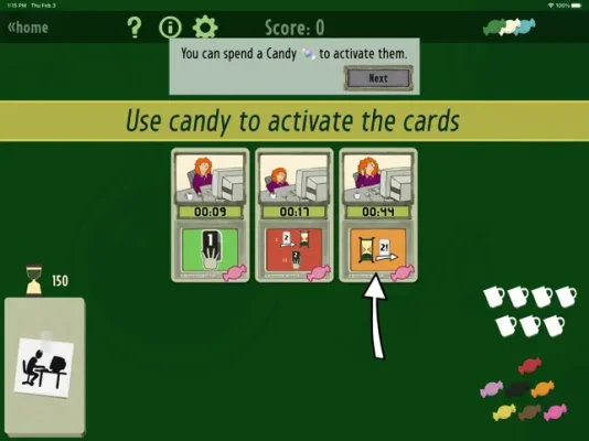 Finished! is a unique and exciting application designed by renowned board and card game designer Friedemann Friese. The goal of the game is to complete all of your work before you run out of coffee and candy. Similar to regular solitaire, you will deal 3 cards at a time. However, in Finished!, you have the added bonus of being able to use candy to activate cards, allowing you to draw more and rearrange them as needed.