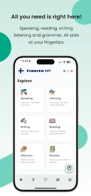 Finnish It! is an innovative and comprehensive application that serves as your all-in-one AI-powered companion for learning Finnish. It covers all aspects of the language, including grammar, vocabulary, and conversation skills, and helps you learn in a natural and effective way. The application offers a range of key features that make it stand out from other language learning tools. One of its main features is the AI-powered grammar and examples, which allows you to instantly understand grammar rules, noun cases, and verb conjugations through intelligent and context-rich examples. You can also tap on any word to see its meaning, form, and usage in a sentence, making it easier to grasp the language. In addition to this, Finnish It! also offers fun and interactive games that allow you to learn while you play. These games focus on verb conjugation, grammar forms, and vocabulary, making the learning process more engaging and enjoyable. The application also provides real-life speaking scenarios, where you can practice Finnish conversations with AI based on everyday situations, such as making complaints, calling a company, or visiting a doctor. Finnish It! is designed to cater to all language skills, including speaking, listening, reading, and writing. It offers structured, skill-based exercises that can be accessed from one intuitive dashboard, making it convenient and easy to use. The application also provides personalized feedback, giving you instant corrections and insights on your grammar, vocabulary, and comprehension. The AI-generated explanations are tailored to your performance, helping you improve and progress in your learning journey. The clean and intuitive interface of Finnish It! is another standout feature. It is beautifully designed and user-friendly, allowing you to focus on learning rather than figuring out what to do next. Whether you are a beginner just starting out or an advanced learner aiming for fluency, Finnish It! is your smart and supportive learning partner. With its comprehensive features and user-friendly interface, it is the perfect tool for anyone looking to learn Finnish in a natural and effective way.