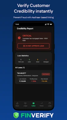 Finverify is a revolutionary app designed to transform the way microfinance businesses manage loans. It aims to minimize financial risk and maximize returns by providing real-time warnings about potential defaulters and automating risk assessment for every loan application. With Finverify, loan management shifts from being reactive to predictive, allowing businesses to make informed lending decisions and say goodbye to financial losses.