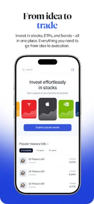 The app also offers smart discovery features, allowing users to find potential winners before they become popular. This is done through curated investment themes, industry rankings, and personalized recommendations for stocks, ETFs, and bonds. Users can find their next investment in seconds.
