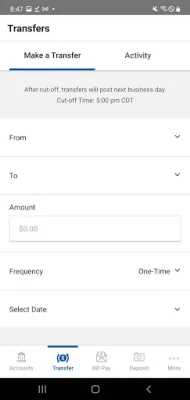 The app also offers a bill pay feature, allowing users to make payments and view recent and scheduled payments. This makes it easy to stay on top of bills and avoid late fees. Users can also manage their payees directly from the app, adding new payees, deleting existing ones, or updating their information as needed.