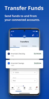 In addition to managing your account, the app also offers features for transferring money. You can make transfers between your internal accounts, as well as send money to friends, family, and others using their mobile number or email address.