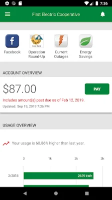 One of the main features of First Electric is its simple and convenient bill payment system. You can quickly view your account balance and due date, set up recurring payments, and modify your preferred payment methods. The app also allows you to view your bill history, including PDF versions of paper bills, directly on your mobile device.