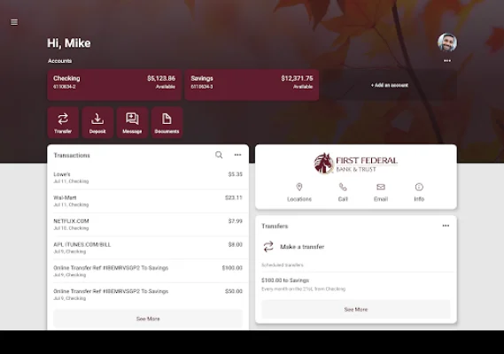 In case you misplace your debit card, First Fed Mobile Banking allows you to easily reorder a new one or turn it off for added security. You can also view and save your monthly statements directly from the app, making it easier to keep track of your finances.