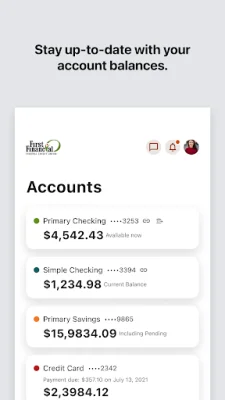 The First Financial mobile app allows you to securely access your accounts 24/7, making it convenient for you to manage your finances on-the-go. With just one login, you can view all of your First Financial shares and loans, as well as those of other members you are associated with. This eliminates the hassle of logging in multiple times to access different accounts.