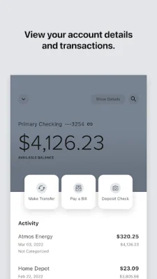 Checking your balances is made easier with a quick balance view on the login screen. You can also view recent and pending transactions, giving you a better understanding of your spending and saving habits. Plus, you can deposit checks using mobile deposit, saving you a trip to a branch.