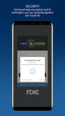 Security is a top priority for the First United DIGITAL BANKING App. It is developed with state-of-the-art security features, including enhanced encryption and identity verification technology such as Touch ID and Facial Recognition for sign-in. This ensures that your account information is protected at all times.