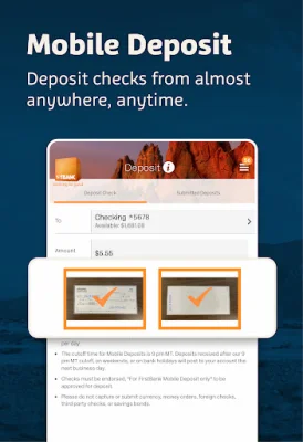 Fingerprint Login allows you to quickly and securely access your account with just the touch of a button. FirstGlance lets you view balances and eBills without even logging in, and Mobile Deposit allows you to deposit checks from anywhere.