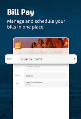 Our app also offers Bill Pay, which allows you to receive and pay bills electronically in one convenient location. You can use this feature to pay anyone in the United States that you would normally pay by check, automatic debit, or cash.