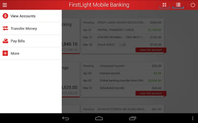 This application allows users to easily manage their finances by providing access to their account balances and transactions. Users can also transfer funds between their accounts, pay bills, view copies of cleared checks, and deposit checks. Additionally, the app provides a convenient feature to locate surcharge-free ATM's and FirstLight branches.