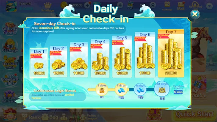 Players can also earn free gold coins every day by signing in, completing fish shooting tasks, and even when they go bankrupt. The game also features mythical BOSSes with high explosion rates, such as the sea king and dragon king, providing players with the thrill of shooting fish and collecting gold coins.