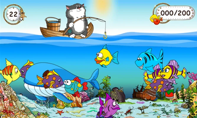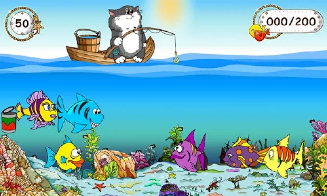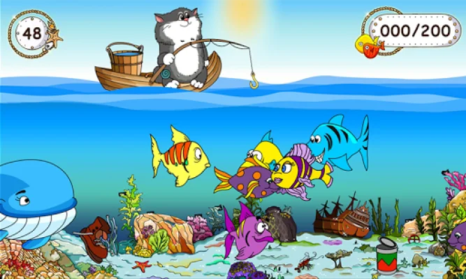 In this game, children will go on a fishing trip where they will have to catch as many fish as possible and collect points to pass each level. Points are earned for every fish caught, but beware of catching a shoe, tin, or dangerous predator as it will result in a reduction of points. The game features unusual and colorful fish that will capture the attention of children and the fisherman, a cat, will be loved by kids. With fun and colorful illustrations and music, children will have a great time playing this game.