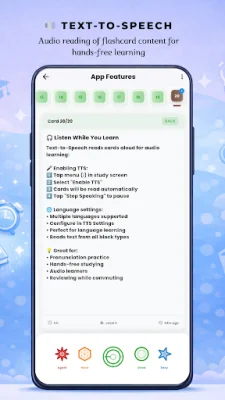One of the key features of Flashcardit is its ability to create and manage unlimited flashcards with ease. This allows you to customize your study materials according to your needs and preferences. Additionally, the app utilizes a smart spaced repetition system (SRS) to improve your memorization skills. This technique, used by top learners, helps reduce forgetting and ensures long-term retention of information.
