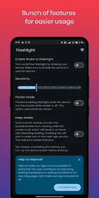For those who speak languages other than English, Flashlight: Shake & Morse also offers translation support. Users can visit the app's website to help with translations and ensure that the app is accessible to a wider audience. The website also provides helpful tips for creating original and SEO-friendly translations. Overall, Flashlight: Shake & Morse is a useful and user-friendly app that offers a variety of features to make life easier in different situations.