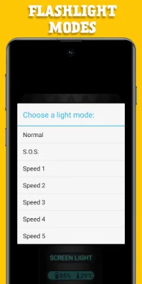 In addition to the basic flashlight function, this application also offers an S.O.S mode and a flash speed mode. The S.O.S mode can be used in emergency situations to send out a distress signal in Morse code. The flash speed mode allows users to adjust the speed of the flashlight, making it useful for signaling or creating different lighting effects.