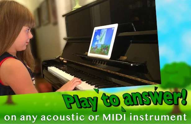The game offers multiple ways for players to respond to flashcards, including playing the note on their acoustic or MIDI instrument, tapping letter buttons, or playing a key on an on-screen piano. This allows for a more engaging and interactive learning experience.
