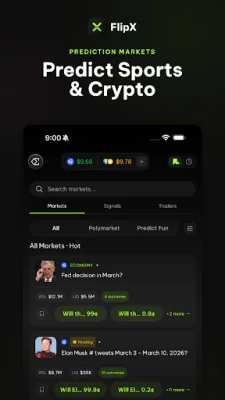 Overall, FlipX is a top choice for traders due to its comprehensive features, including the ability to predict and trade on multiple platforms, discover new opportunities, and cash out instantly. With its user-friendly interface and advanced tools, FlipX is a must-have for anyone looking to make smarter predictions and faster trades. Download FlipX now and experience the future of prediction market apps.