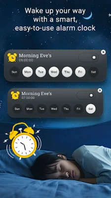 The Floating Alarm feature allows you to set alarms that will display as floating notifications. You can easily manage your alarms by setting a name, time and date, and selecting repeat day options. You can also choose a custom ringtone for each alarm.