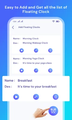 The floating clocks can be dragged and adjusted anywhere on the screen for convenience. The same goes for the floating stopwatch, which can be used directly from the screen. Users can also create different timers and easily access them from the timer list.