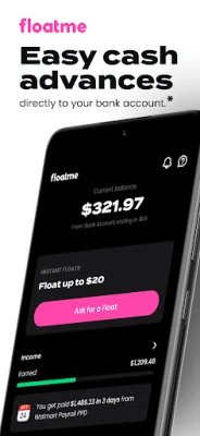 FloatMe is a financial app that offers cash advances, financial forecasting, low balance alerts, offers, spending insights, and secure bank account connections. With FloatMe, users can access their earned but unpaid wages quickly through Floats, which can be requested at no cost and received in their bank account within 3 days. For immediate access to funds, users can also opt for an Instant Float for a small fee.