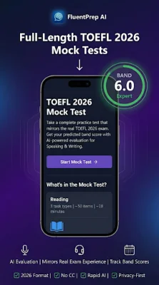 FluentPrep AI is an application designed to help users improve their English language skills, specifically for the TOEFL exam. The app offers a variety of features to help users practice and prepare for the exam, including reading, listening, writing, speaking, and a mock test section. The app also includes a progress dashboard to track performance over time.