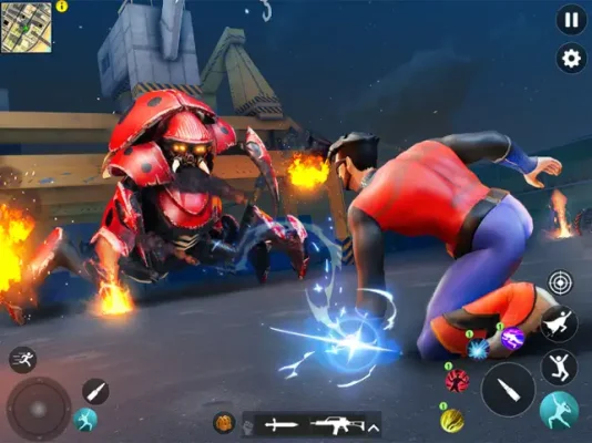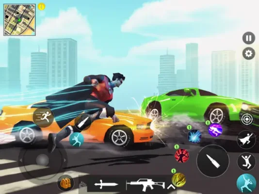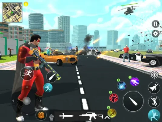 The game features exciting elements such as flying at super speed to watch over the city, slinging across buildings, driving awesome cars and bikes, and even realistic helicopter flying controls. You will also have access to a modern selection of guns and the ability to engage in sword fighting. Prepare yourself for an epic adventure as you battle against alien creatures, robots, and other enemies to protect Earth and its inhabitants from these relentless foes.