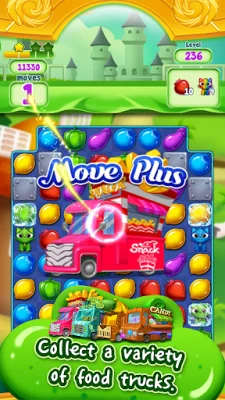 The game is simple - match 3 or more candies to earn points. But if you're able to match 4 or more candies, they will burst into a special candy, giving you even more points! Your ultimate goal is to earn 3 stars in each stage, which will allow you to upgrade your Food Truck.
