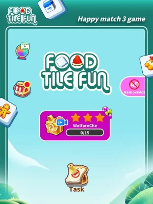 But that's not all - Food Tile Fun also offers a variety of activities to keep you entertained. Spin the super big wheel for a chance to win amazing rewards. Collect stars to unlock the welfare treasure chest and receive artifacts and props from the store for free. These special props will make it even easier for you to conquer each level. Plus, completing game tasks will earn you double the gold coins!