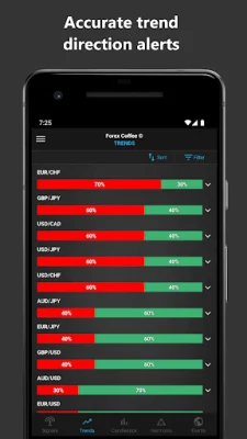 The live forex signals include detailed data such as currency pair, direction (buy/sell), and live status with results in pips. Traders can track active and closed signals at any time. The live forex trends feature helps traders stay updated with dynamic trend detection across multiple currency pairs and sends alerts when trend directions shift on key timeframes. This allows traders to follow the market flow more confidently.