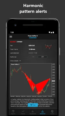 The main features of our app include live forex signals, live forex trends, Japanese candlestick pattern alerts, harmonic pattern notifications, and economic event reminders. These tools provide real-time trade alerts, trend detection, identification of key candlestick formations, and notifications for potential market turning points.