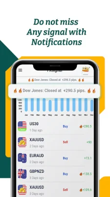 The signals provided by this app cover a wide range of assets, including currency pairs, gold, stocks, and cryptocurrencies. Users can easily identify the most profitable signals for these assets through practical statistical analysis, particularly for gold and Dow Jones. The app emphasizes the importance of "investment management" for consistent profits and encourages users to get started.