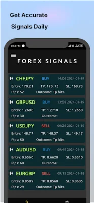 This application provides free trading signals for users who are interested in the foreign exchange market. These signals are highly analyzed and based on both technical and fundamental analysis. Users can expect to receive daily signals for major currency pairs such as EUR/USD, EUR/CAD, CHF/JPY, CAD/JPY, and GBP/USD. These signals are designed to help users make informed decisions when trading in the market.